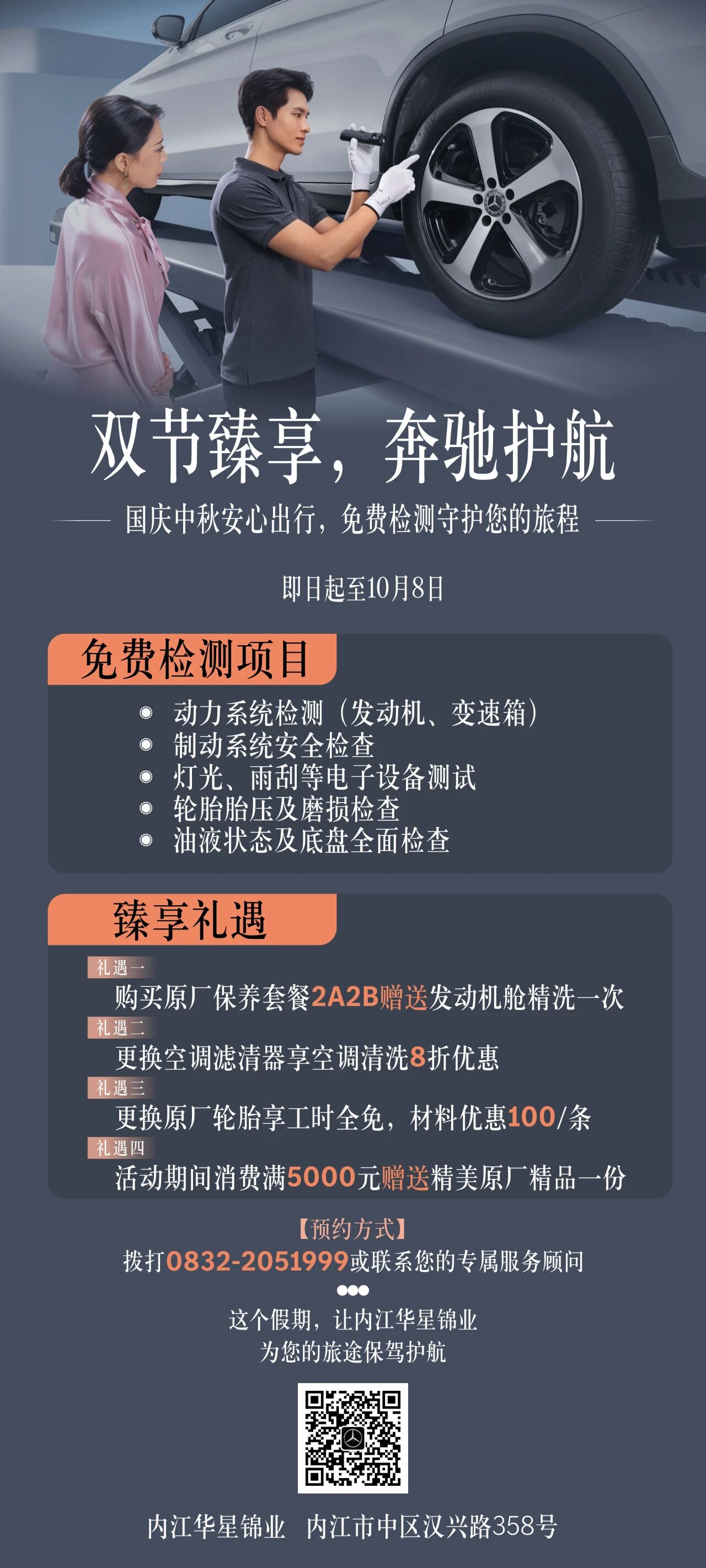 【华星奔驰】乐享十一,放心奔驰 | 国庆中秋安心出行,免费检查守护您的旅程