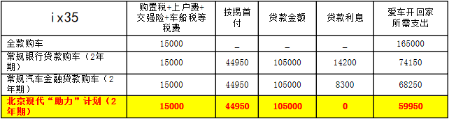 以ix35为例,参加“助力”计划购车的优势一目了然。