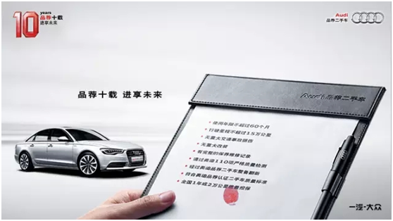 2004年,一汽-大众奥迪率先在国内开展品牌二手车业务,并于2007年推出全方位的高档二手车服务。2009年11月,一汽-大众奥迪结合奥迪全球统一严苛标准和中国用户需求,正式发布了“奥迪品荐二手车”子品牌,并将其建设成为国内最成功的高档二手车品牌。
