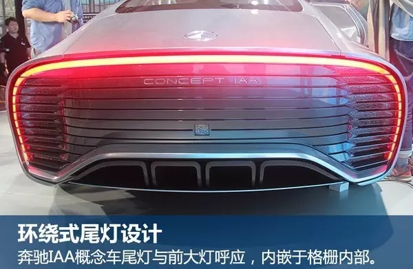 奔驰Concept IAA采用内封闭式的进气格栅,可在模式变化下,前保险杠的下部护板可向旁边延伸20毫米,同时向后延伸25毫米,从而改善车辆前端以及前部车轮拱周围的气流,也使得气流直接向轮毂方向分散开。