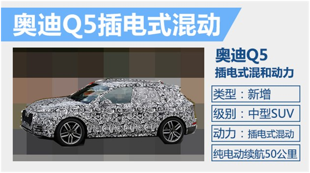 全新一代Q5还将推出一款插电式混合动力版本。预计新车所搭载的插混动力系统由2.0T涡轮增压发动机与电动机组成,在纯电动模式下的续航里程能够达到约50公里。新一代Q5有望在今年10月举办的巴黎车展中发布,随后于2017年引入国内。插电式混合动力版本最终是以进口还是国产的形式入华,还需要后续继续跟进。
