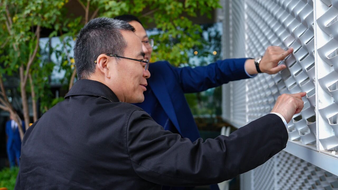 陕西华星锦业总经理穆世青先生在介绍中表示:陕西华星锦业奔驰客户体验中心从绿色建筑,绿色运营两大方面入手,在设计阶段充分美融入绿色理念,海绵城市集水设施、太阳能光伏发电储能系统、太阳能热水供应系统、太阳能LED路灯照明系统、中深层地热能无干扰供暖系统、国际标准绿色双层建筑、智能多场景灯光控制系统、国标一级变频多连中央空调、VOCs废气净化处理系统等全面履行并积极推动绿色高质量发展。