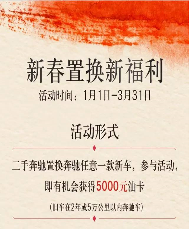 暖春购车,置换赠好礼!明媚春日,梅赛德斯-奔驰置换活动如约而至,即日起至3月31日,华星锦业奔驰羊西4S店梅赛德斯-奔驰星睿认证二手车将对您的爱车进行免费检测评估,如将符合条件的奔驰座驾置换升级为奔驰新车(任意车型),更可有机会获赠价值5000元油卡。